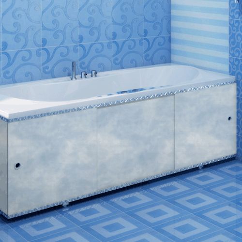 Экран под ванну выполняет в ванной комнате декоративную функцию, скрывая коммуникации под ванной, а также позволяет рационально использовать пространство под той же ванной, разместив за экраном все необходимое, например, бытовую химию.