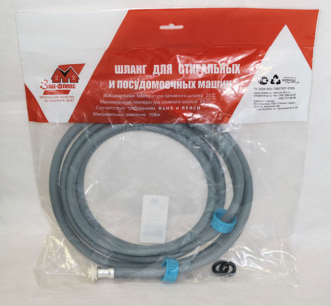 Шланг наливной, 2.0 м "TUBOFLEX" для стиральной и посудомоечной машины, пакет