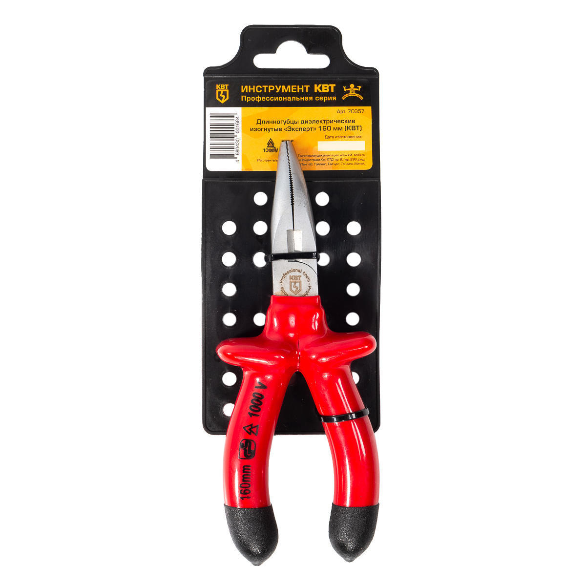 70357 длинногубцы изогнутые диэлектрические ЭКСПЕРТ 160 мм (КВТ)