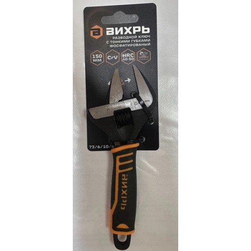 Разводной ключ с тонкими губками, фосфатированый, 150 мм, Вихрь