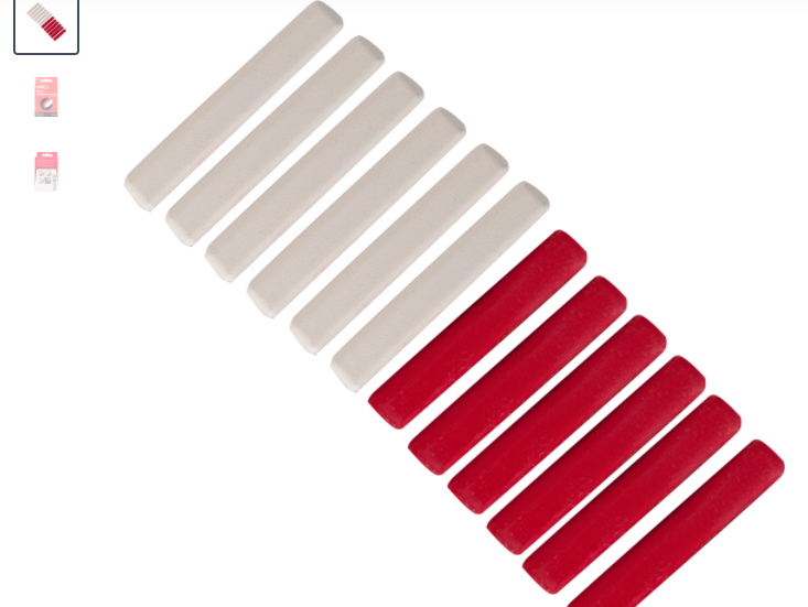 Для нанесения четко различимой разметки на материалах и поверхностях в комплекте предусмотрены мелки двух цветов — 6 белых и 6 красных.